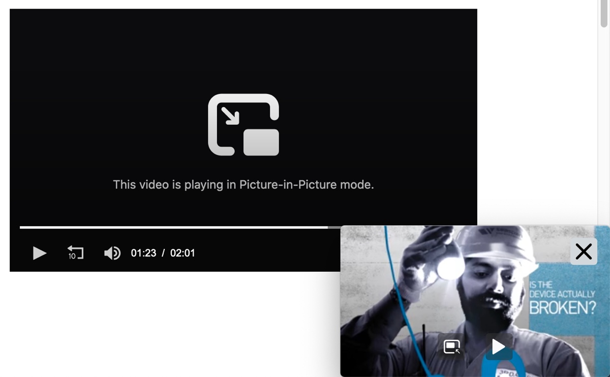 Just click the “Picture-in-Picture” button in almost any video and you’ll get a little video player that plays no matter what website you go to. You’re no longer stuck on the page–the video follows you wherever you go.